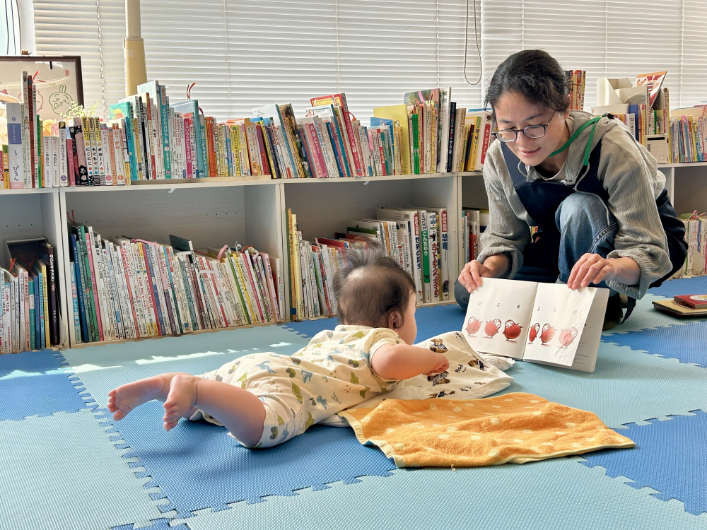 8月28日(木)、市民活動ステーションのオープンスペースで、0歳児から楽しめる本のよみがたりタイムを開催しました。
