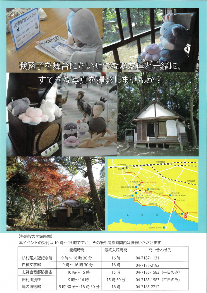 我孫子市の文化施設でぬいぐるみを撮影するイベントが開催されます。